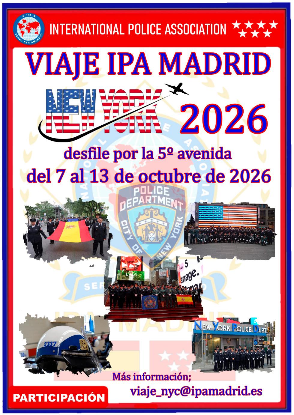 Qualsevol dubte o aclaració contactar amb el:  viaje_nyc@ipamadrid.es , posant nom i número de telèfon.