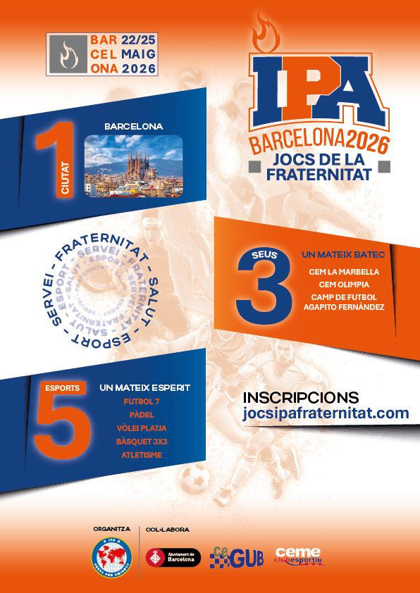 Del 21 al 25 de maig de 2026, Barcelona acollirà els Jocs IPA de la Fraternitat, una gran trobada esportiva internacional on es combinen competició, companyonia i esperit de fraternitat.